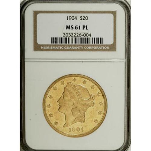 1904 $20 MS61 Prooflike NGC. NGC Census: (49/347).