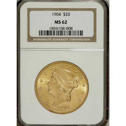 1904 $20 MS62 NGC. NGC Census: (52860/88385). PCGS