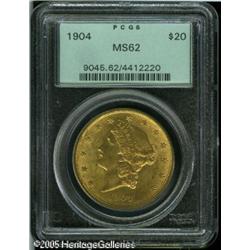 <B>1904 $20 MS62 PCGS.</B></I> A great store of value with eye appeal to boot. Lot:9351