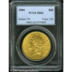 <B>1904 $20 MS62 PCGS.</B></I> An attractive and boldly struck apricot-gold example of this available Liberty Twenty issue. Lot:9337