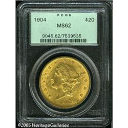 <B>1904 $20 MS62 PCGS.</B></I> The reverse of this lustrous greenish-gold piece is well preserved, while the obverse has no more than the expected number of minor abrasions. Lot:9338