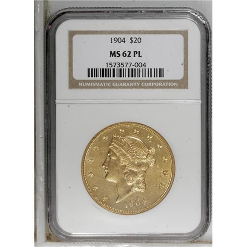1904 $20 MS62 Prooflike NGC. NGC Census: (178/160)