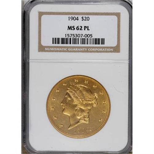 1904 $20 MS62 Prooflike NGC. NGC Census: (185/162)