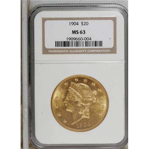 1904 $20 MS63 NGC. NGC Census: (56077/31891). PCGS