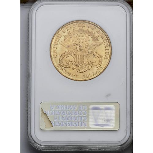 <B>1904<$20> MS63 NGC.</B></I> Undertones of lime-green are embedded with apricot-gold patination, and sharply struck devices prevail throughout. Some obverse contact marks and scuffs define the grade on this lustrous example.