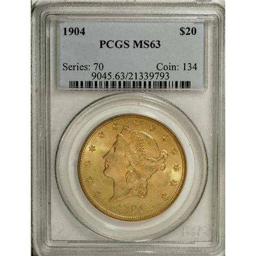 1904 $20 MS63 PCGS. PCGS Population (42656/25814).