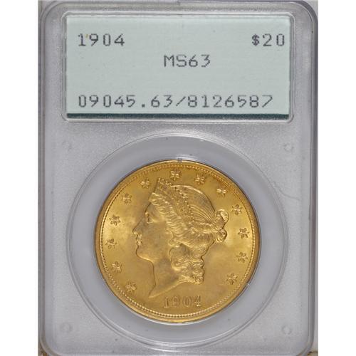 1904 $20 MS63 PCGS. PCGS Population (42721/25799).