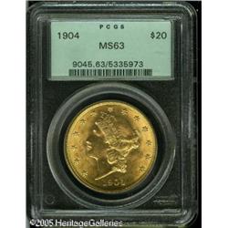 <B>1904 $20 MS63 PCGS.</B></I> This apricot-gold representative delivers flashy luster and good eye appeal. Boldly struck, a couple of small marks are near the chin. Lot:9356