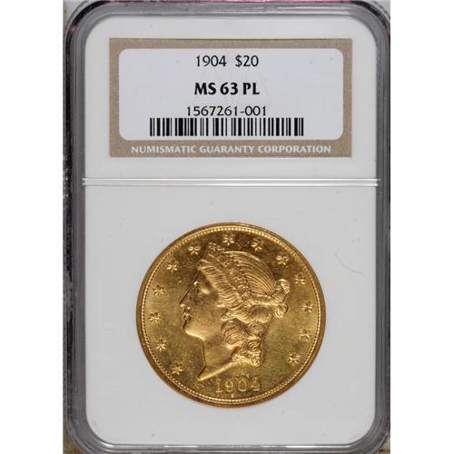 1904 $20 MS63 Prooflike NGC. NGC Census: (118/42).