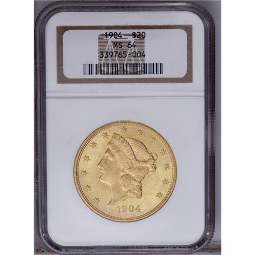 1904 $20 MS64 NGC. The fields are clean, show a satiny 1904[$20] MS64 NGC.