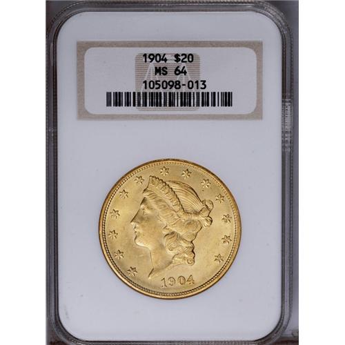 1904 $20 MS64 NGC. Well struck with coppery-gold, sati 1904[$20] MS64 NGC.