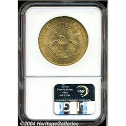 <B>1904<$20> MS64 NGC.</B></I> Apricot-gold coloration over lustrous surfaces. Relatively well struck, with a few light abrasions, including a couple of small rim bruises at 8 o'clock. <BR><BR><B>Important notice:</B> Heritage usually auctions material at the rate of 200-250 lots per hour. On some occasions eBay Live bid software or the Internet may not be able to keep up with the pace of the auction. We recommend placing a realistic absentee bid now as insurance to avoid disappointment. Occasionally the auctioneer may eliminate or reject an eBay Live bid, and the auctioneer may also reopen a lot after the close of the eBay live bidding (usually because we missed an audience bid), and may reject your bid even if it shows you as the winning bidder. By bidding via eBay Live, you agree that Heritage may award the lot to another bidder at its sole discretion under the circumstances described above or any other reasonable circumstances. Since eBay bids are not shown to us until we open the lot on the floor, we treat those bids just like floor bids. In most cases the floor responds before the eBay bid is presented to us, due to Internet lag time, so for consistency we have made it a policy that floor bids are always considered first over tie eBay live bids. Also please note that all Heritage lots purchased through eBay Live carry a 20% Buyer's Premium. Please make sure you read the Terms and Conditions before you bid. </span></font></tr></table></td></tr></table>