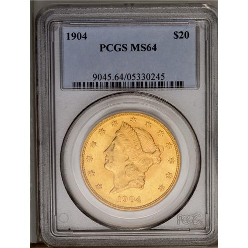 1904 $20 MS64 PCGS. A bright, shimmering Mint State r 1904