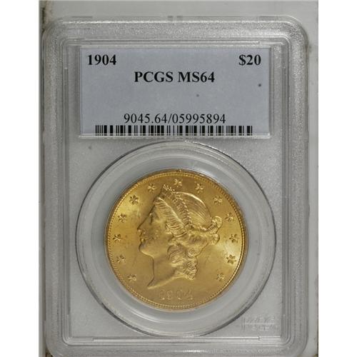 1904 $20 MS64 PCGS. A fully struck example of this pop