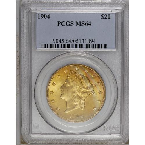 1904 $20 MS64 PCGS. A lustrous and colorful double eag