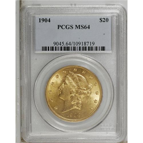 1904 $20 MS64 PCGS. Acknowledged as the common date of