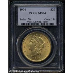 <B>1904 $20 MS64 PCGS.</B></I> Brilliant and lustrous with frosty surfaces that are especially nice for the grade. Lot:9375