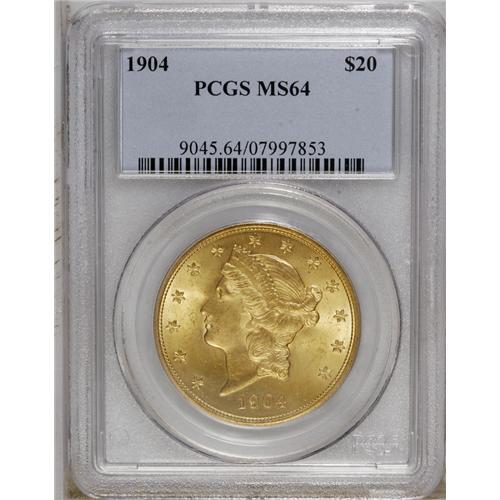 1904 $20 MS64 PCGS. Choice and frosty, this solidly st