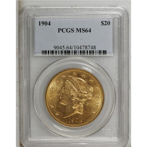 1904 $20 MS64 PCGS. Choice and solidly struck with att