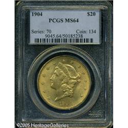 <B>1904 $20 MS64 PCGS.</B></I> Fully struck and lustrous. A Gem were it not for a luster scrape in the lower right obverse field. Lot:9373