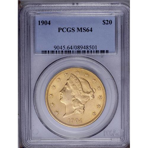 <B>1904<$20> MS64 PCGS.</B></I> Fully struck with lovely golden-orange toning and scintillating luster. A small mark in the right obverse field is the only noteworthy defect. A high-end example for the grade.