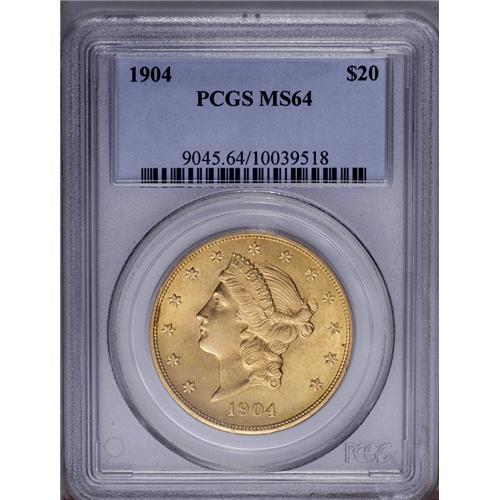 1904 $20 MS64 PCGS. Pleasingly smooth, peach-gold surf 1904[$20] MS64 PCGS.