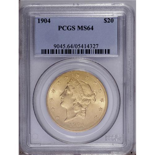 <B>1904<$20> MS64 PCGS.</B></I> Sharply struck and noticeably free from abrasions, this is a premium type coin for the collector.
