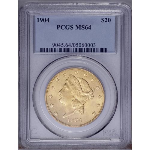 1904 $20 MS64 PCGS. Splendid for the grade, since the 1904[$20] MS64 PCGS.