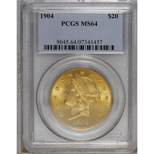 1904 $20 MS64 PCGS. The devices on each side are boldl