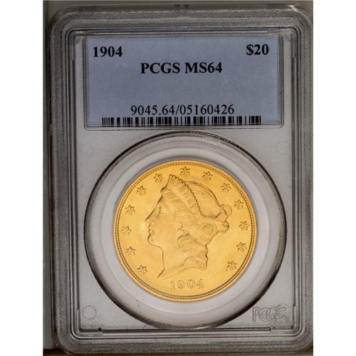 <B>1904<$20> MS64 PCGS.</B></I> This attentively struck and thoroughly lustrous double eagle would likely achieve full Gem status, were it not for a solitary mark on Liberty's chin.
