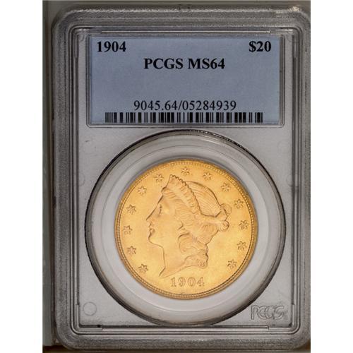 <B>1904<$20> MS64 PCGS.</B></I> This beautiful Choice double eagle has the overall appearance of a full Gem. A small mark on the base of the 4 in the date is of little consequence.