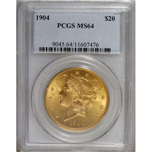 <B>1904 $20 MS64 PCGS.</B></I> Radiant luster is emitted from orange-gold surfaces. Sharply struck, with just a few minor grade-defining marks.<BR><BR><b>Shipping:</b> Coins & Currency (<a target="_blank" href="http://www.heritageauctions.com/common/shipping.php">view shipping information</a>)