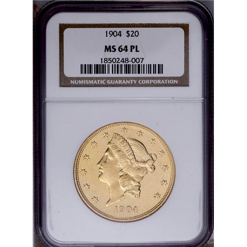 1904 $20 MS64 Prooflike NGC. Flashy, profoundly deep m 1904[$20] MS64 Prooflike NGC.