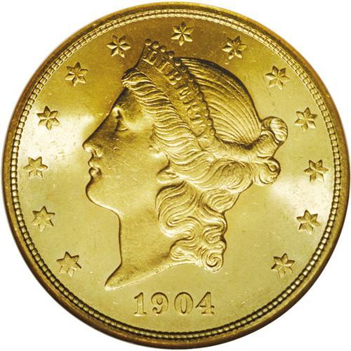 <B>1904<$20> MS65 NGC.</B></I> A lovely Gem quality example of the type, with rich orange-gold color and soft, frosty luster. Although this is the most common date of the type, Gem examples are not seen with any frequency, and very few finer quality coins have been certified. An ideal candidate for the type collector.