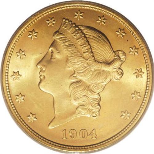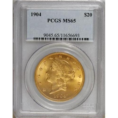 <B>1904 $20 MS65 PCGS.</B></I> A beautifully preserved orange and olive Gem that lacks the numerous marks usually encountered on Mint State Liberty twenties. The 1904 is (and will always be) common, but only a tiny fraction of survivors can compete with the quality of the present coin.<BR><BR><b>Shipping:</b> Coins & Currency (<a target="_blank" href="http://www.heritageauctions.com/common/shipping.php">view shipping information</a>)