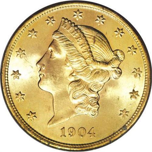 <B>1904 $20 MS65 PCGS.</B></I> This wonderful Gem is housed in a first-generation PCGS holder. It is a gorgeous and frosty beauty with virtually impeccable surfaces. A small dark streak in Liberty's hair and a few tiny abrasions in the fields are barely worth describing. Although a common date, MS65 is essentially the top grade where the date is easily obtained. PCGS has only certified 127 finer examples.<BR><BR><B>Coin Engraver:</B> James B. Longacre<BR><BR><b>Shipping:</b> Coins & Currency (<a target="_blank" href="http://www.heritageauctions.com/common/shipping.php">view shipping information</a>)