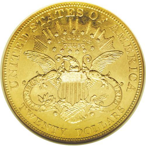 <B>1904<$20> MS65 Prooflike NGC.</B></I> 1904 was an extraordinary year for prooflike double eagles; NGC has certified 341 prooflike pieces, more than any other year in the series (8/06). Examples that are as well-preserved as the present coin, however, are hard to find. This Gem is moderately mirrored, more strongly reflective on the reverse, with faint haze over the lavender-accented yellow-orange surfaces. A long, thin abrasion is noted on the reverse between the eagle and DOLLARS, but this has little impact on the overall eye appeal. An impressive display piece, perfect for those who want to go above and beyond for a 20th century type set. Census: 8 in 65 Prooflike, 2 finer (8/06).