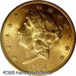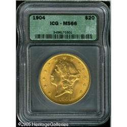 <B>1904 $20 MS66 ICG.</B></I> Exceptional mint luster characterizes this premium Gem example of the most frequently encountered Liberty Double Eagle. Well, but not fully struck, the surfaces are exceptionally clean with no obvious or distracting abrasions on either side. Lot:9386