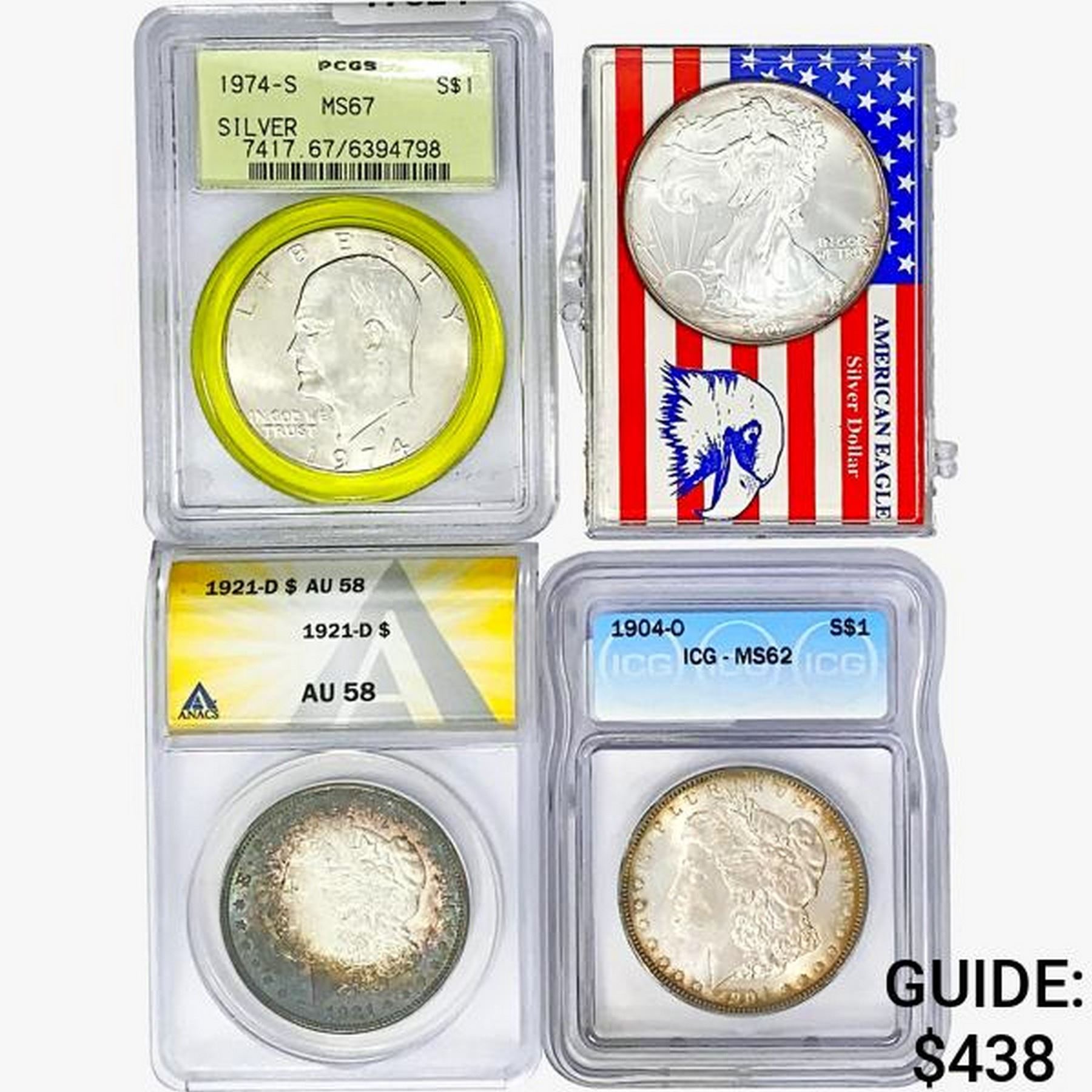COINS AND CURRENCY LISTED IN GSA’S CATALOG AS GRADED AND ENCAPSULATED BY PCGS, NGC, ANACS, ICG, PCGS CURRENCY, PMG, PCGS BANKNOTE GRADING, CMC OR ANY OTHER THIRD-PARTY GRADING SERVICE ARE LIKEWISE SOLD “AS-IS” EXCEPT AS EXPRESSLY SET FORTH HEREIN. ALL THIRD-PARTY GRADING SERVICE GUARANTEES, INCLUDING AUTHENTICITY, ARE THE SOLE RESPONSIBILITY OF THE THIRD-PARTY GRADING SERVICE AND NOT WARRANTIES OR GUARANTEES OF GSA. BIDDERS SHOULD CONTACT THESE THIRD-PARTY GRADING SERVICES DIRECTLY WITH RESPECT TO ANY CLAIMS OR QUESTIONS THEY MAY HAVE CONCERNING THEIR GUARANTEES AND WARRANTIES. BIDDERS ACKNOWLEDGE AND AGREE THAT AUCTIONEER IS NOT BOUND BY OR LIABLE FOR ANY OPINION OR CERTIFICATION BY ANY THIRD-PARTY GRADING SERVICE. REMOVAL OF A PRODUCT FROM ITS PROTECTIVE CASING OR HOLDER OR ALTERATION OF ANY COIN HOLDER WAIVES ALL RIGHTS CONCERNING THE PRODUCT CONTAINED THEREIN.
