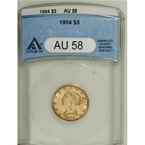 1904 $5 AU58 ANACS. NGC Census: (214/5008). PCGS P