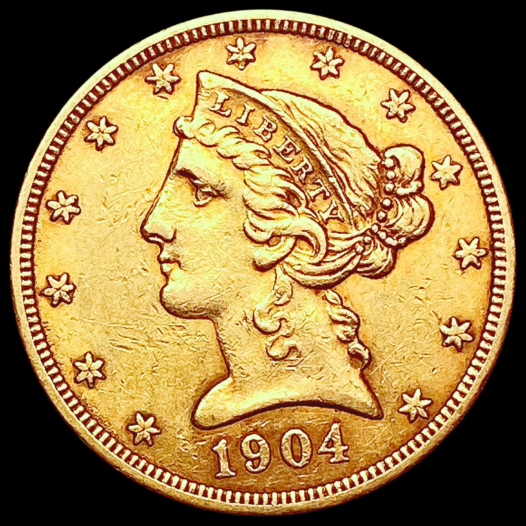 1904 $5 Gold Half Eagle CLOSELY UNCIRCULATED