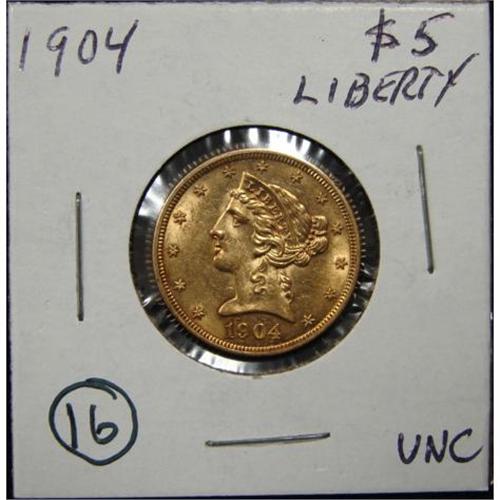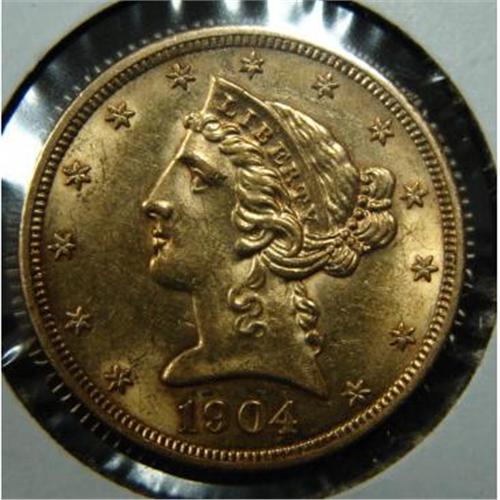 1904 $5 LIBERTY GOLD COIN. Unc.