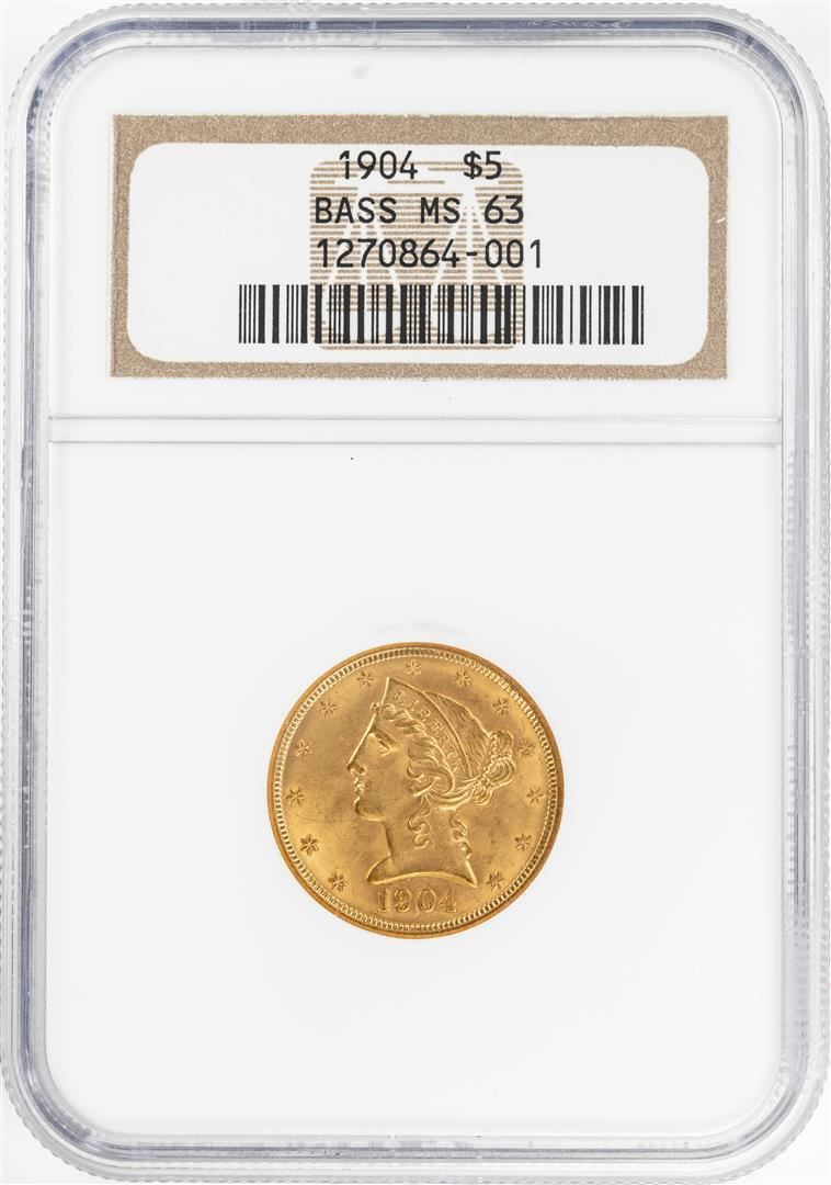 1904 $5 Liberty Head Half Eagle Gold Coin NGC MS63 Bass Collection