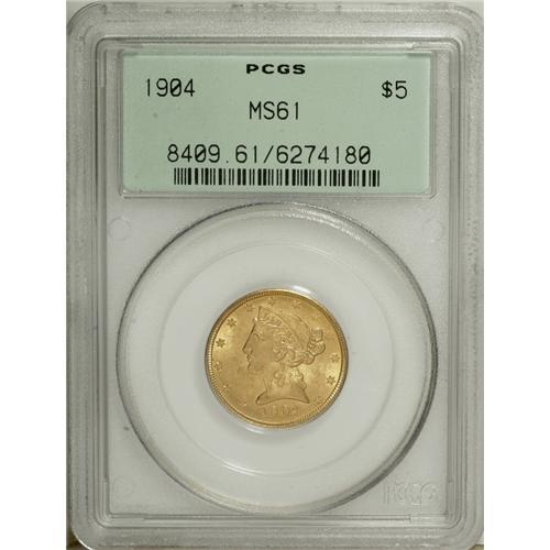 1904 $5 MS61 PCGS. PCGS Population (256/1195). NGC