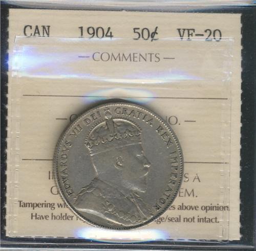 1904 50¢. A key date problem free Edwardian half in ICCS VF20