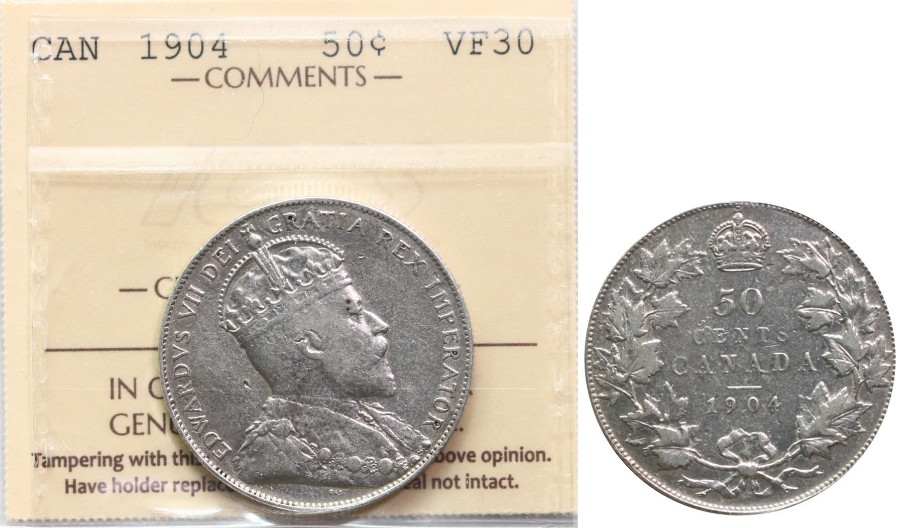 1904 50¢ ICCS Choice Very Fine-30 Brilliant and lustrous. Key date.