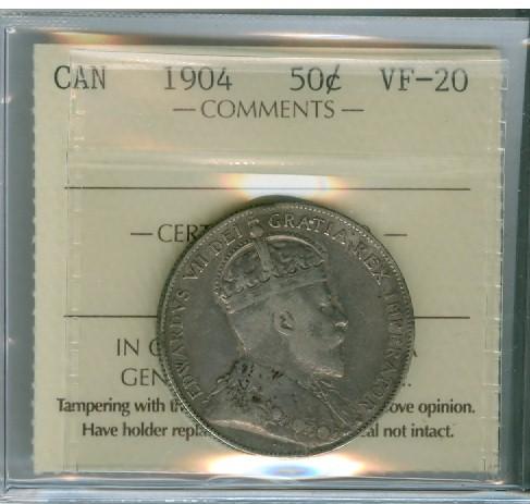 1904 50¢ ICCS VF20 A nice example with problem free.