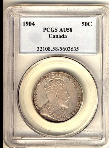 1904 50¢ PCGS AU58. A sharp key issue with a cream like rosy pink finish. Should be viewed.