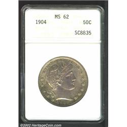 1904 50C MS62 ANACS. Rich sea-green and lilac patina. A well struck Barber Half that has good luster