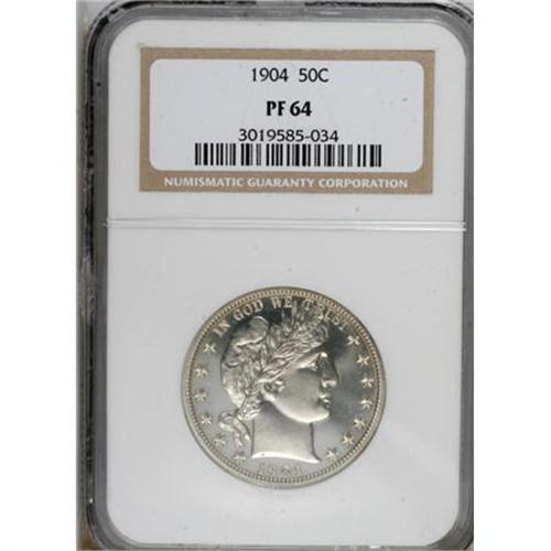 <B>1904 50C PR64 NGC.</B></I> A hint of silver-gray haze at the margins is the only barrier between this gleaming near-Gem and absolute brilliance. A crisply struck specimen that shows a few light, scattered hairlines in the fields.<BR><BR><B>Coin Engraver:</B> Charles E. Barber<BR><BR><b>Shipping:</b> Coins & Currency (<a target="_blank" href="http://www.heritageauctions.com/common/shipping.php">view shipping information</a>)